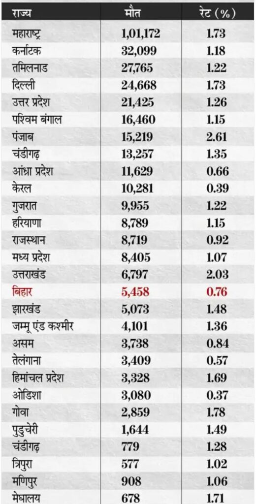 बिहार ने राज्यों की रैंकिंग में कोरोना से मौत के 72% आंकड़ों को छिपाकर देश को दिया धोखा।