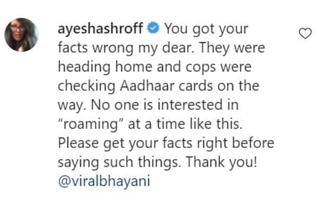 बता दें कि टाइगर श्रॉफ की मां आयशा श्रॉफ ने लिखा की, ‘आपके फैक्ट्स गलत है. दोनों घर आ रहे थे और पुलिस ने उनका सिर्फ आधार कार्ड चेक किया था. ऐसे समय में कोई भी घूमने में दिलचस्पी नहीं रखता है. कृपया कुछ भी कहने से पहले अपने फैक्ट्स जरूर देख लें, थैंक यू.’